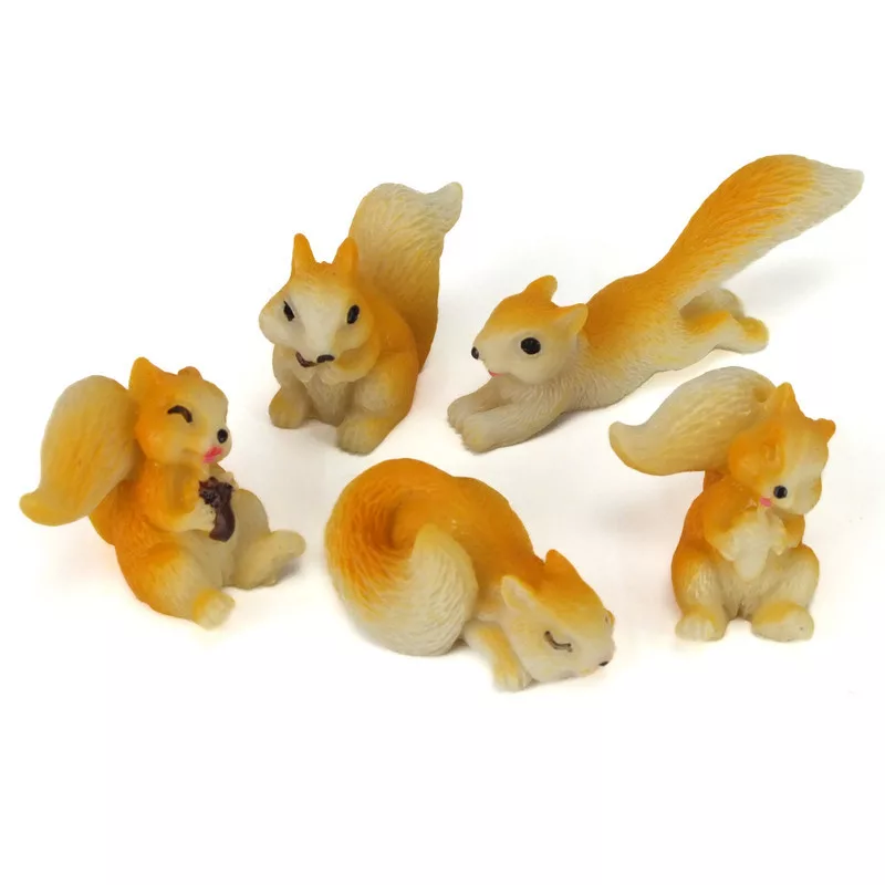 5db Mini polirezin mókusok a tavasztól-őszig tartó szezon dekorációihoz.