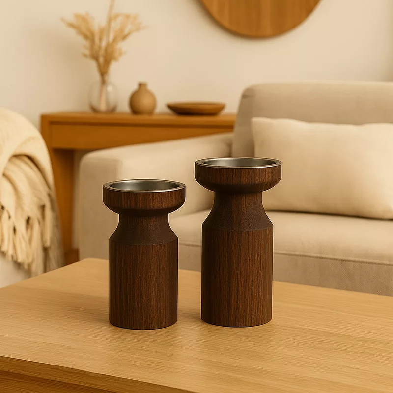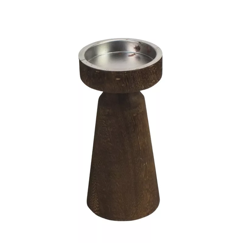Modern barna fa gyertyatartó fém betéttel 20*10cm 30/#