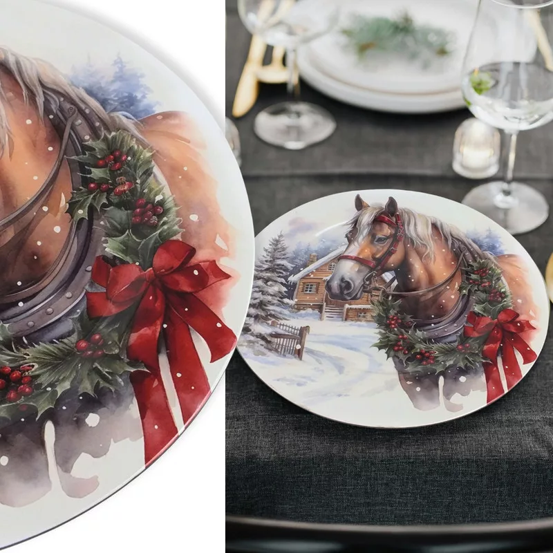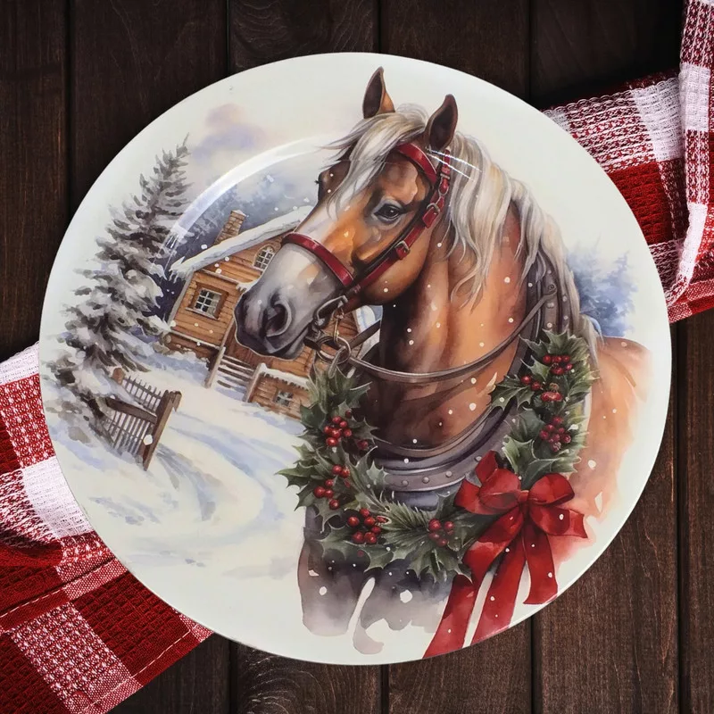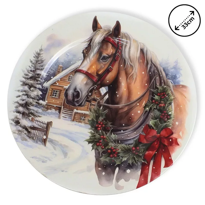 Műanyag, kerek karácsonyi tálca tortákhoz és süteményekhez. Tökéletes választás az ünnepi asztal megterítéséhez, egyszerűvé teszi a torta mozgatását, és dekoratív megjelenésével hozzáad az ünnepi hangulathoz. Kreatív kiegészítőként is használhatod.