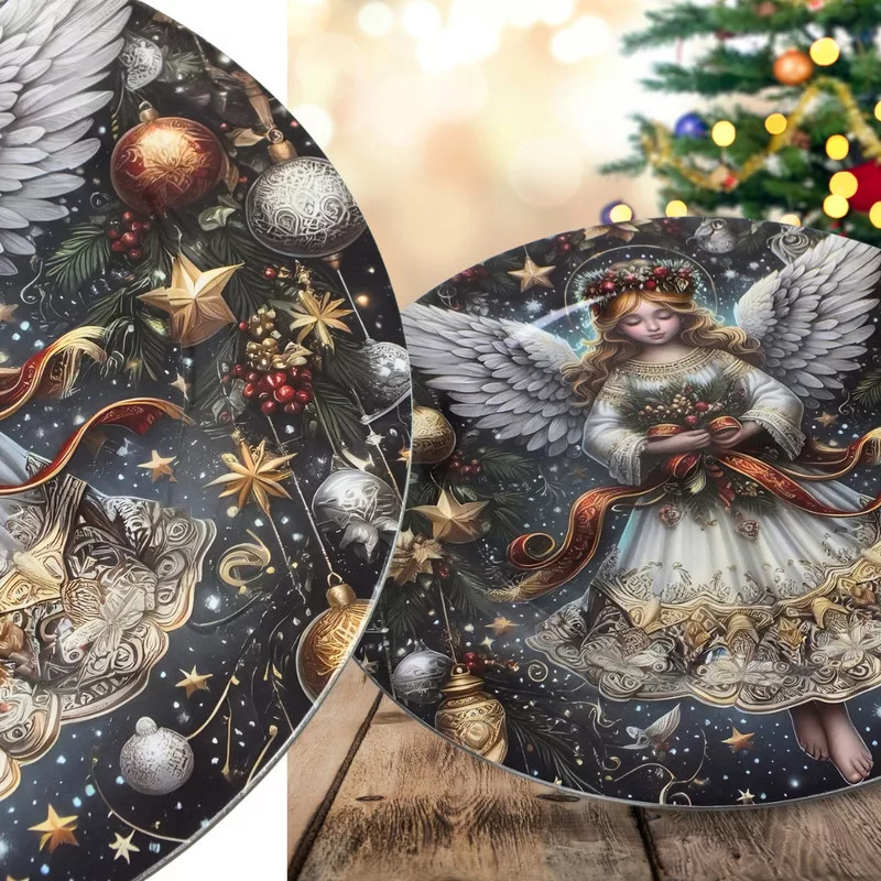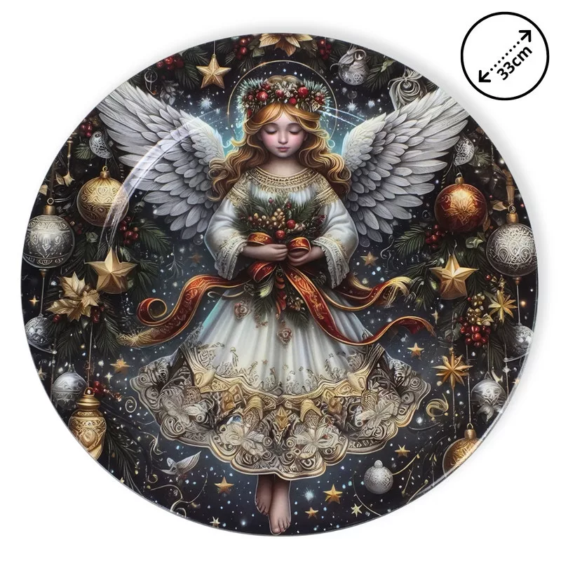 Műanyag, kerek karácsonyi tálca tortákhoz és süteményekhez. Tökéletes választás az ünnepi asztal megterítéséhez, egyszerűvé teszi a torta mozgatását, és dekoratív megjelenésével hozzáad az ünnepi hangulathoz. Kreatív kiegészítőként is használhatod.