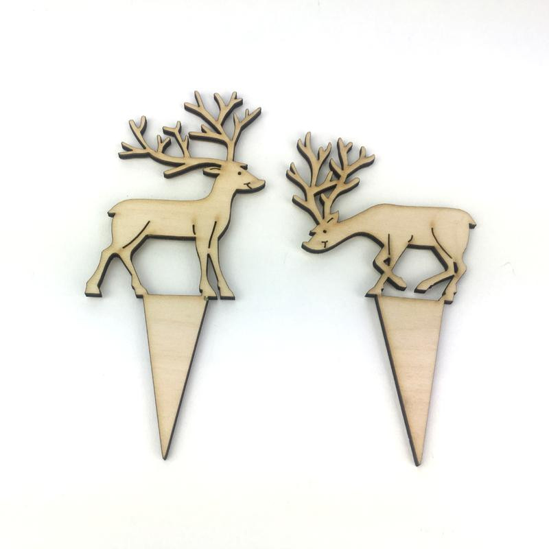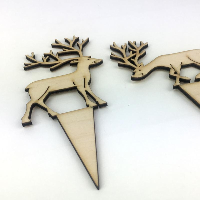 Natúr fából lézervágott szarvasok. A beszúrós talp megkönnyíti a dekorációba való beillesztést és segít megúszni a ragasztással járó nehézségeket. Így utólag is megváltoztathatjuk a szarvasok helyét a készítményben.