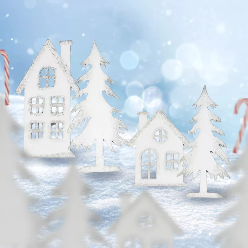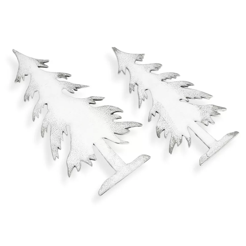 Natúr fából lézervágott fenyő formák, fehérre festve és ezüst színnel díszítve. Jól mutat egyedi karácsonyi készítményekben, otthoni dekorációkban és üzletek bemutatóiban, kirakatokban.