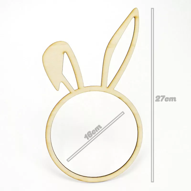 Nyuszifüles díszíthető fa karika, festhető, dekorálható alap.