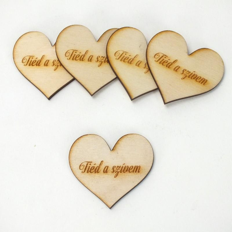Natúr fa - Szív "Tiéd a szívem" 4cm 5db/cs