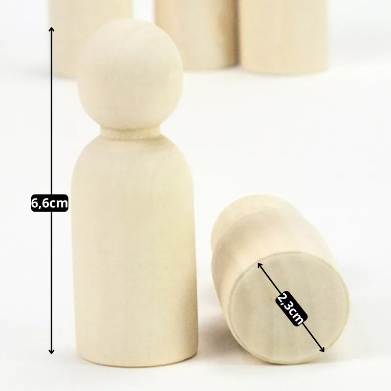 Hozd életre kreatív ötleteidet ezzel a 6,6cm magas, natúr fából készült bábu csomaggal! A csomag  darab letisztult, természetes fa bábut tartalmaz, melyek tökéletesek különféle dekorációs projektekhez, kézműves foglalkozásokhoz és DIY alkotásokhoz. Ezek az egyszerű fa figurák remek alapot nyújtanak, hogy egyedi műalkotásokat készíts.