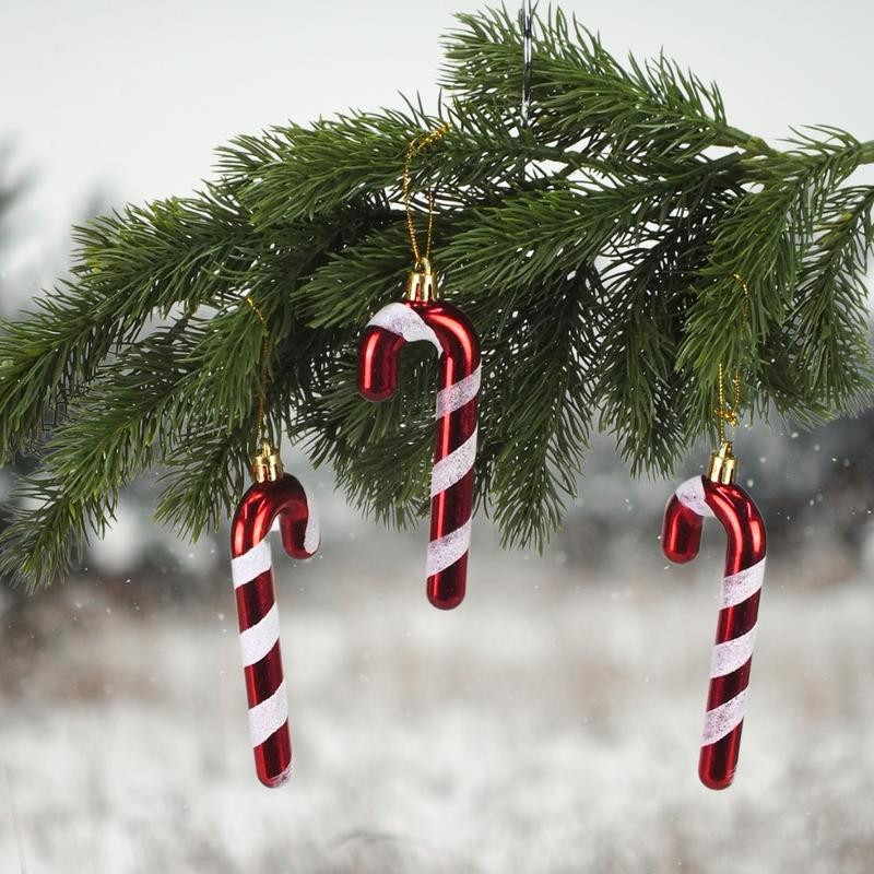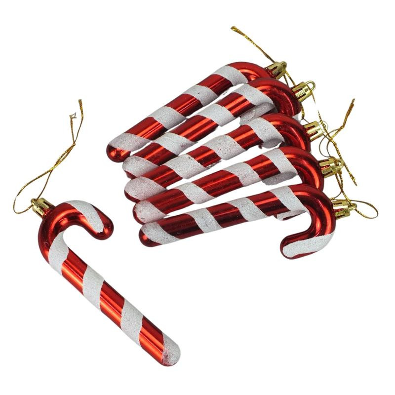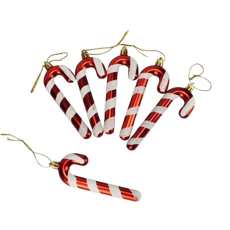 Csillámos karácsonyfadísz dekoráció:  6db nyalókapálcika dísz, akasztóval ellátva.