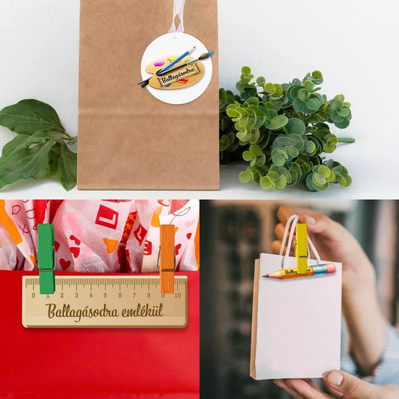 Nyomtatott fa, egyedi díszítő kellék ballagási ajándékokhoz. Hurkapálcikára ragasztva betűzhető díszként használható virágcsokorba is.