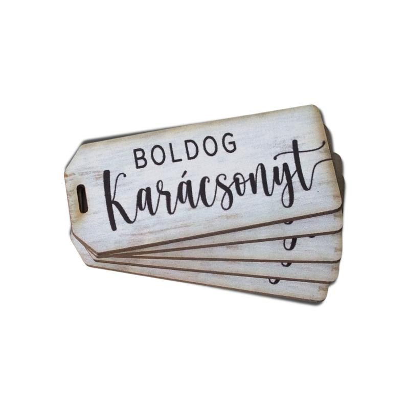 Nyomtatott dekorkarton - Boldog karácsonyt fehér biléta 5db/csomag