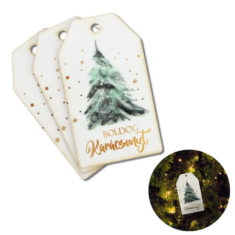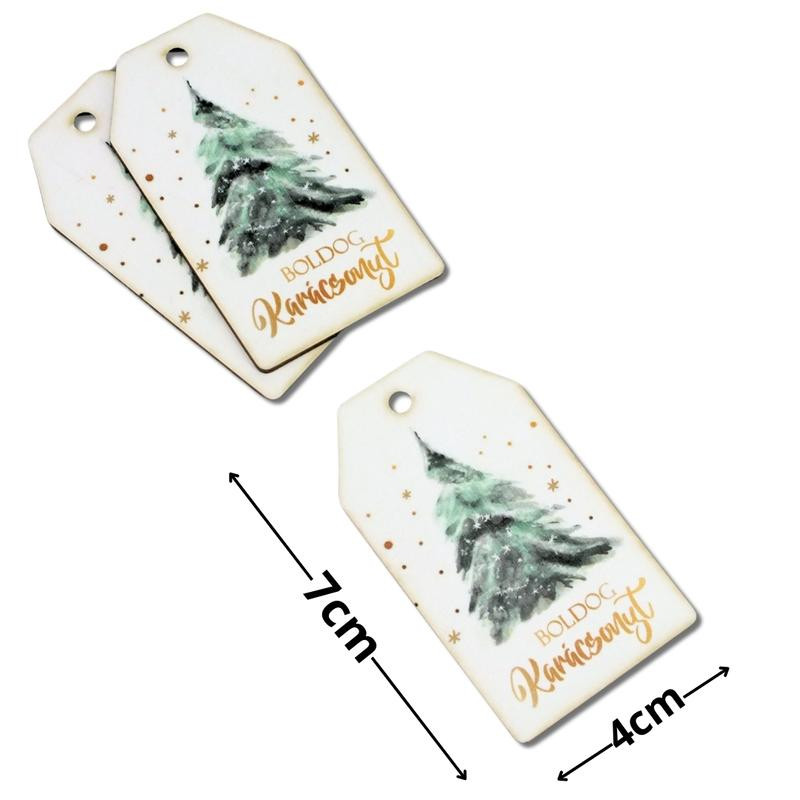 Nyomtatott dekorkarton - Boldog karácsonyt zöld fenyő táblák 3db/cs