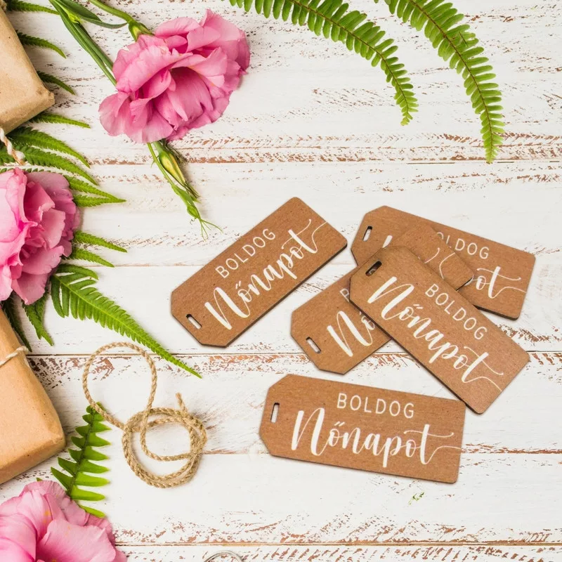 Boldog nőnapot scrapbook táblák natúr színben, 5db/csomag