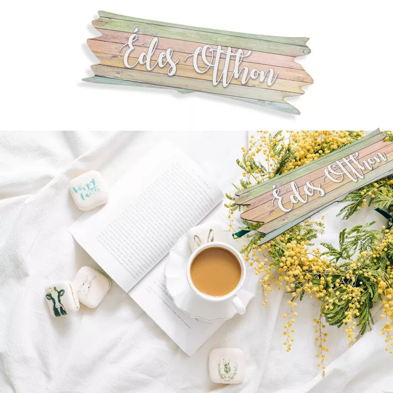 Nyomtatott dekorkarton - Édes Otthon pasztell tábla 7x20cm