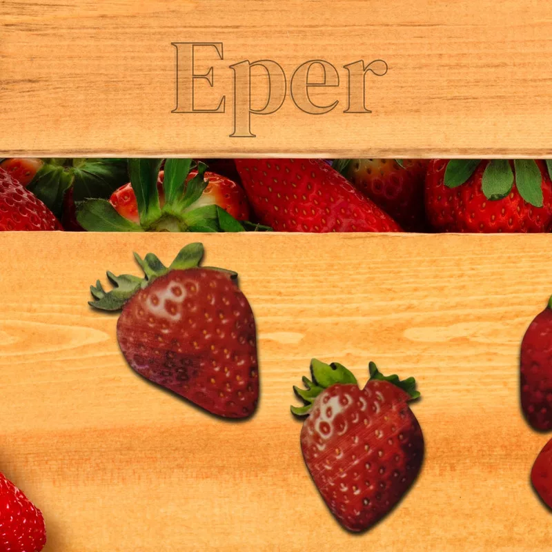 Eper mintájú nyomtatott dekorkarton táblácskák díszítéshez.