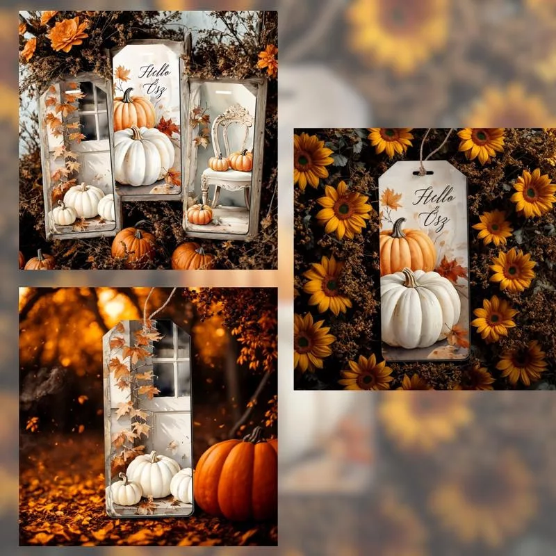 Nyomtatott dekorkarton - Fehér-narancs tök biléták 6db/csomag