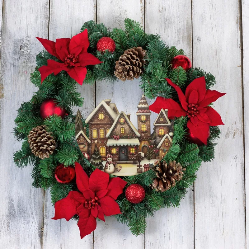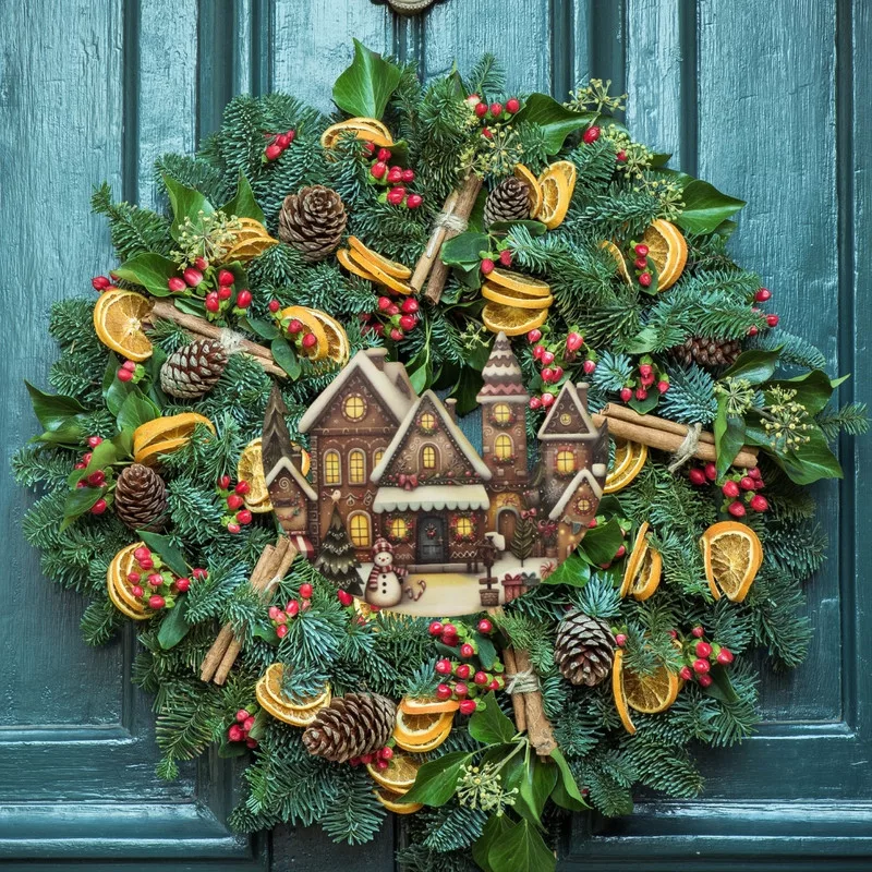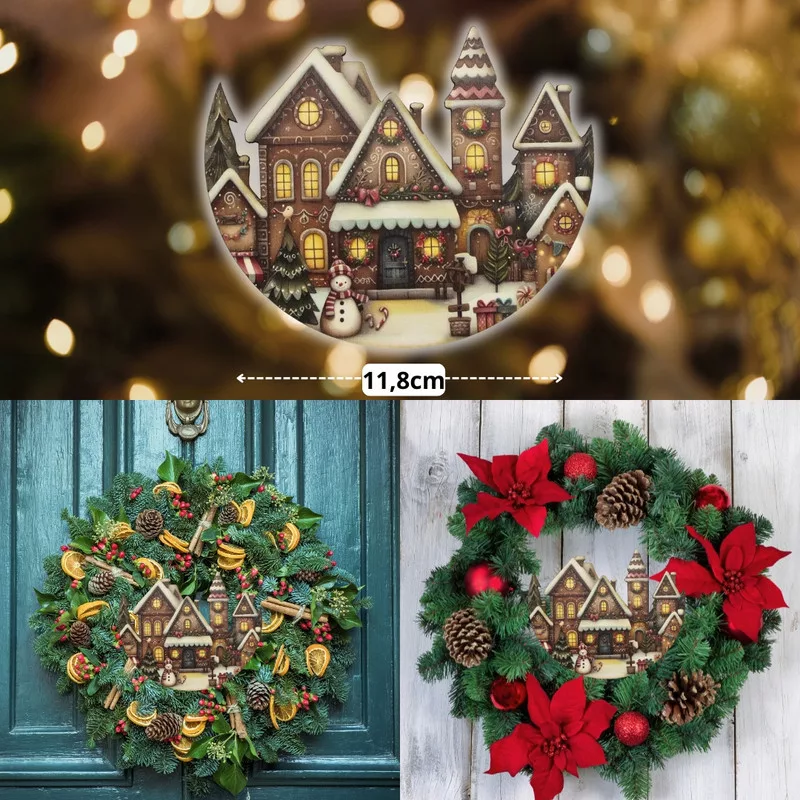 Nyomtatott dekorkarton - Félkoszorú közép - házikós 10x11,8cm