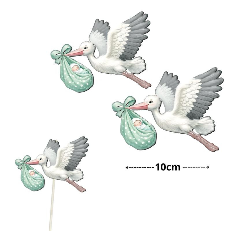 Nyomtatott dekorkarton - Gólya babával zöld 2db/csomag