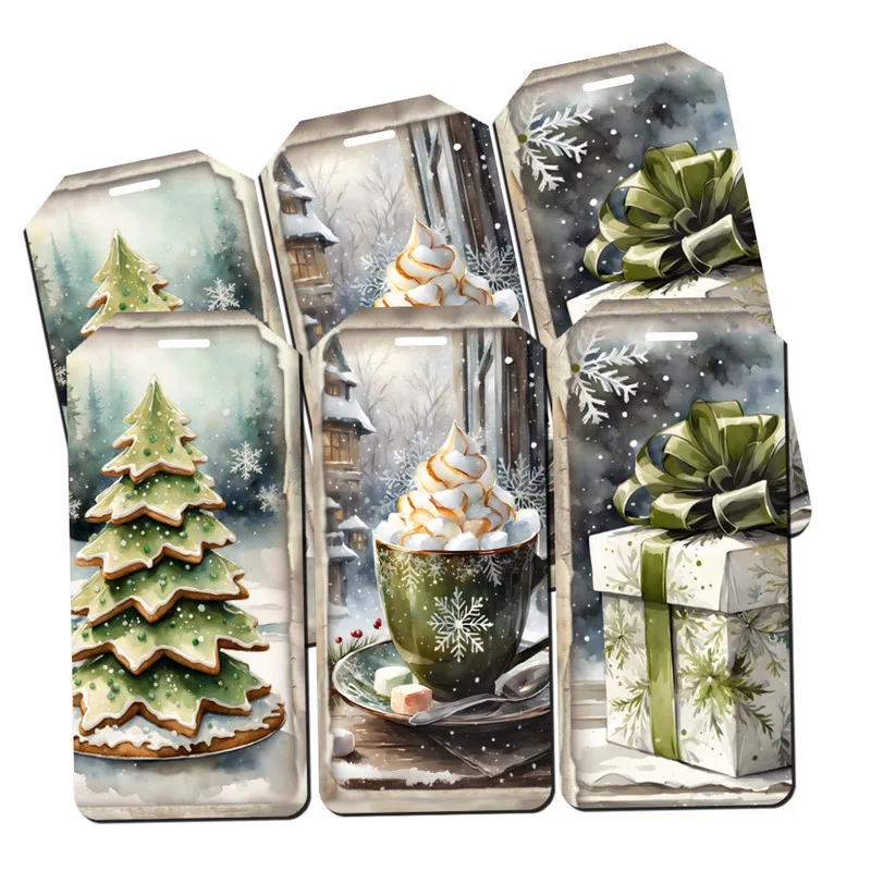 Nyomtatott dekorkarton - Karácsonyi zöld téma - biléták 6db/csomag