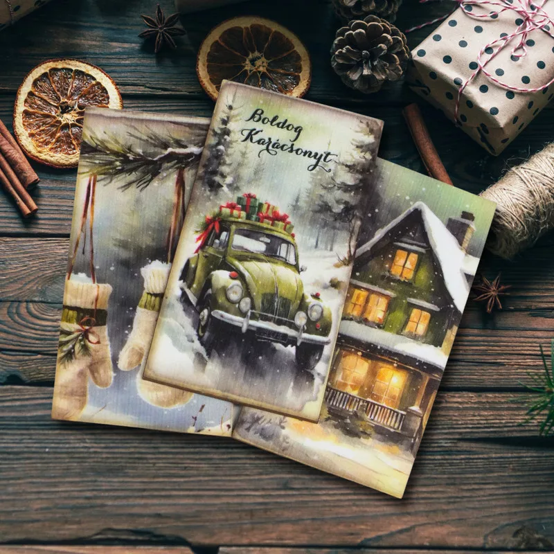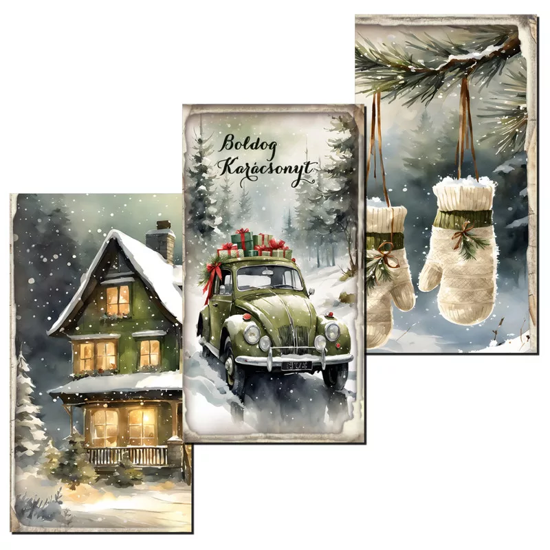 Nyomtatott dekorkarton - Karácsonyi zöld téma táblák 3db/csomag