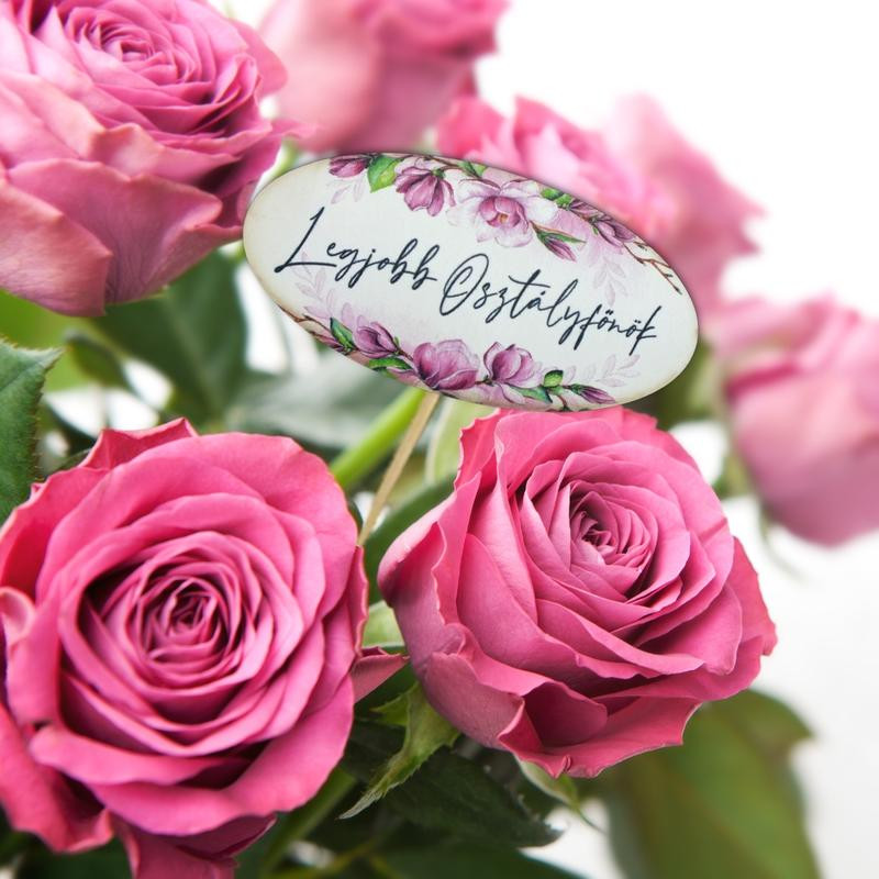 Tanárköszöntő témájú nyomtatott dekorkarton, egyedi díszítő kellék köszönetnyilvánítási ajándékokhoz. Hurkapálcikára ragasztva betűzhető díszként használható virágcsokorba is.