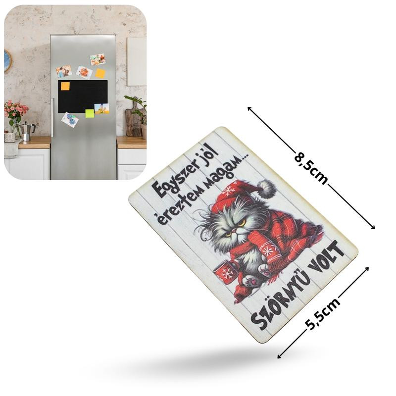 Nyomtatott dekorkarton - Morcos macska "Egyszer.." hűtőmágnes