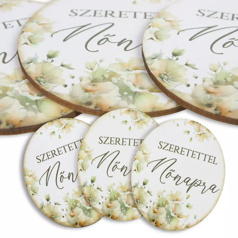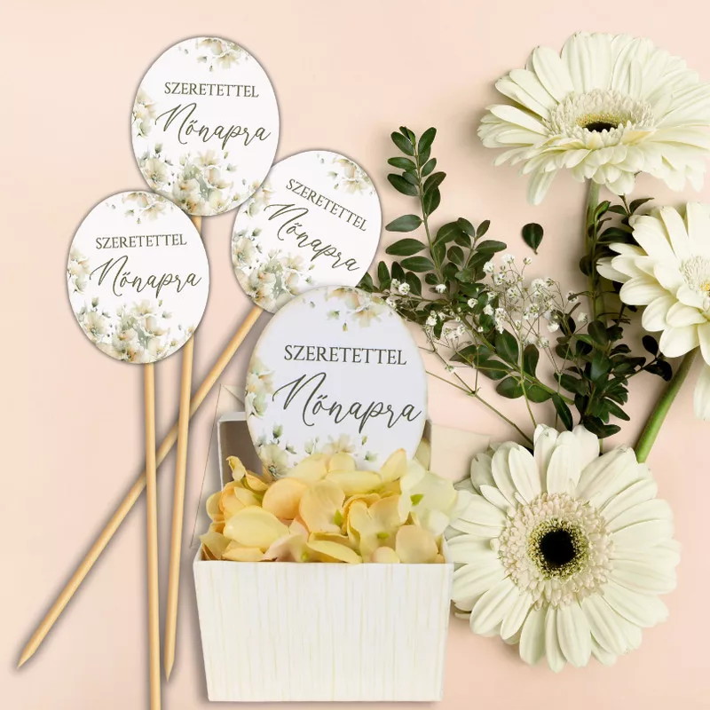 Ez a nyomtatott dekorkartonból készült nőnapi ovál tábla pasztell barack színével és diszkrét virágmotívumával harmonikus, ünnepi megjelenést biztosít. Saját gyártású dekoráció, amely letisztult formájának köszönhetően könnyen illeszkedik különböző nőnapi dekorációs környezetekbe. A 3 darabos kiszerelés praktikus megoldást kínál kirakatokban, üzletterekben vagy virágcsokrok és ajándékok kiegészítőjeként, ahol finoman erősíti az alkalom hangulatát. Ideális választás, ha visszafogott, mégis igényes dekorációval szeretnéd megjeleníteni a nőnap üzenetét.