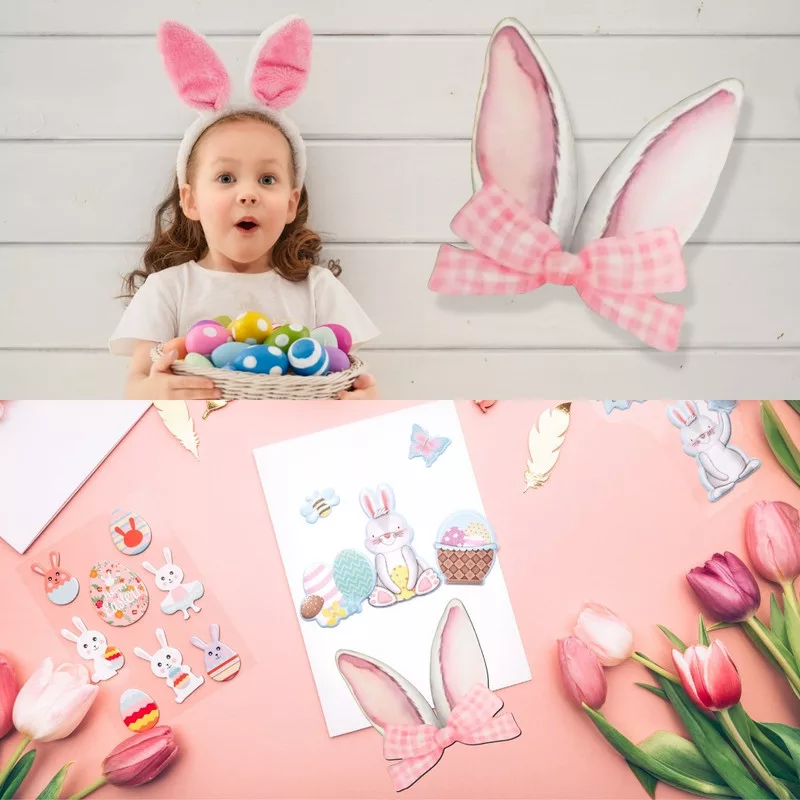 Nyomtatott dekorkarton - Nyuszifül rózsaszín 16x17cm