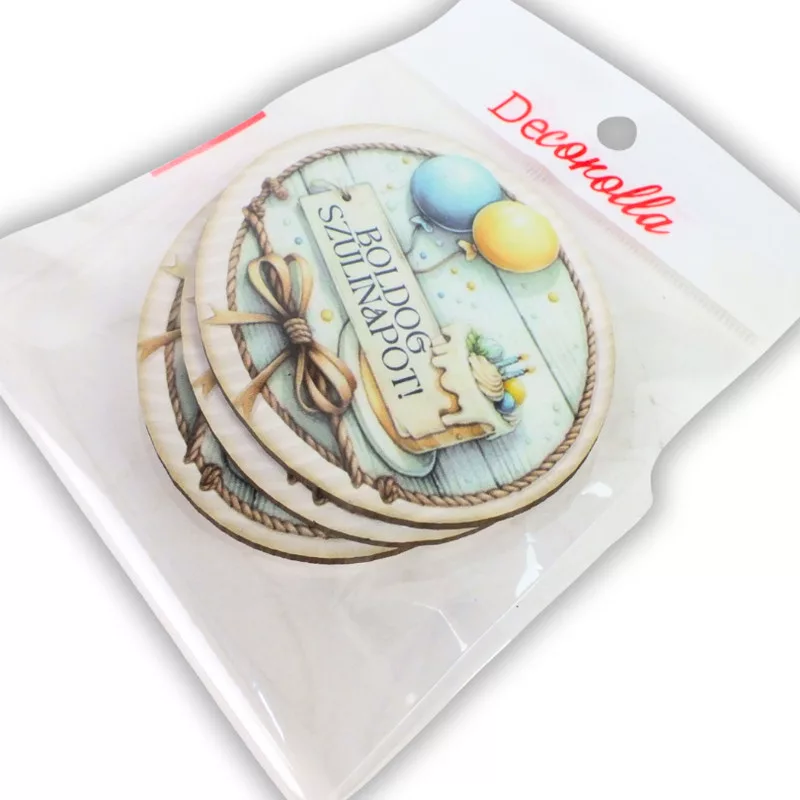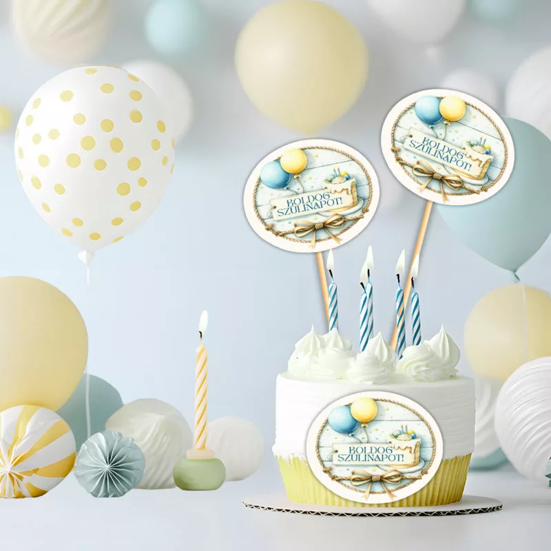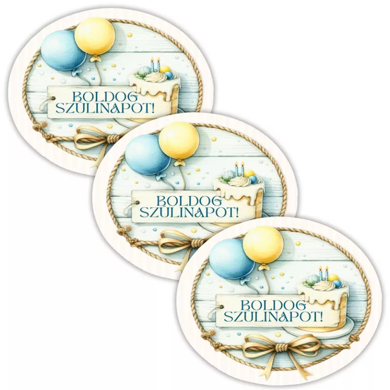 Ez a nyomtatott dekorkarton csomag három darab ovál alakú szülinapi táblát tartalmaz. Jól használható születésnapi asztaldíszekhez, ajándékkísérőkhöz, tortadekorációkhoz vagy kreatív ünnepi összeállításokhoz. Könnyű anyaga miatt egyszerűen rögzíthető, és szépen kombinálható más születésnapi dekorációs elemekkel.
