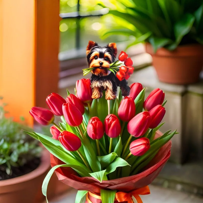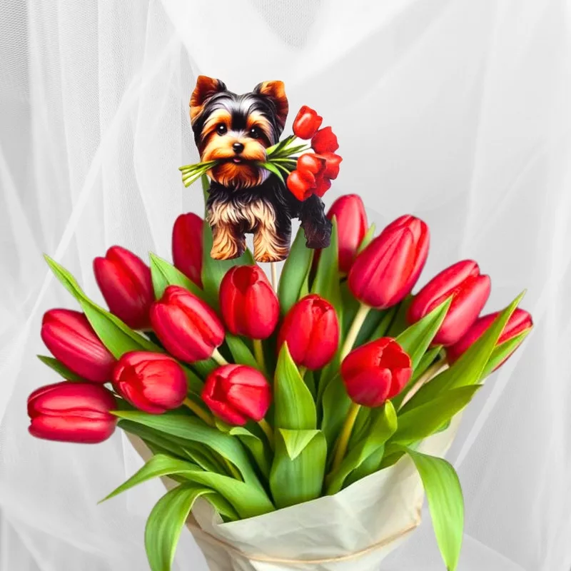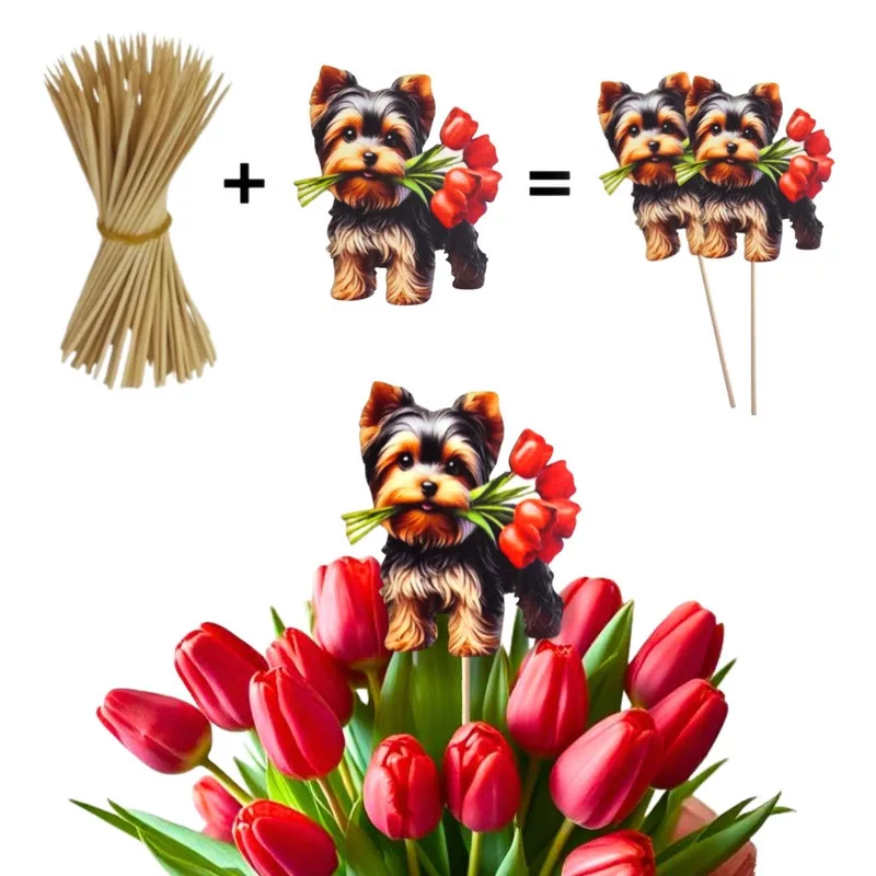 Yorkshire kutya virágcsokorral, 2db/csomag