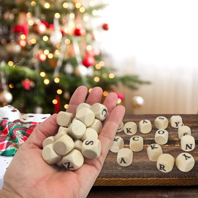 Ez a saját nyomtatású, natúr fa dobókocka 2 szett/csomagban érhető el, KARÁCSONY felirattal. Ideális dekorációkhoz, koszorúkhoz és kreatív karácsonyi összeállításokhoz. Természetes anyagának és letisztult megjelenésének köszönhetően könnyen kombinálható más dekorációs elemekkel - alkoss kedvedre, és teremts ünnepi hangulatot otthonodban.