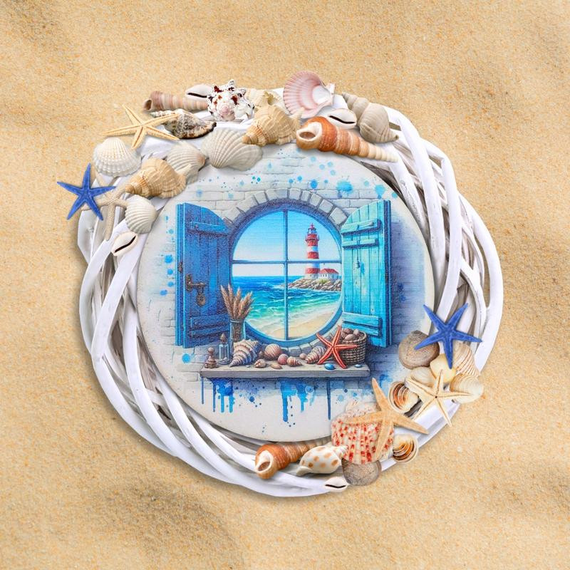 Nyomtatott fa koszorú közép - Tengeri lak 11,8cm