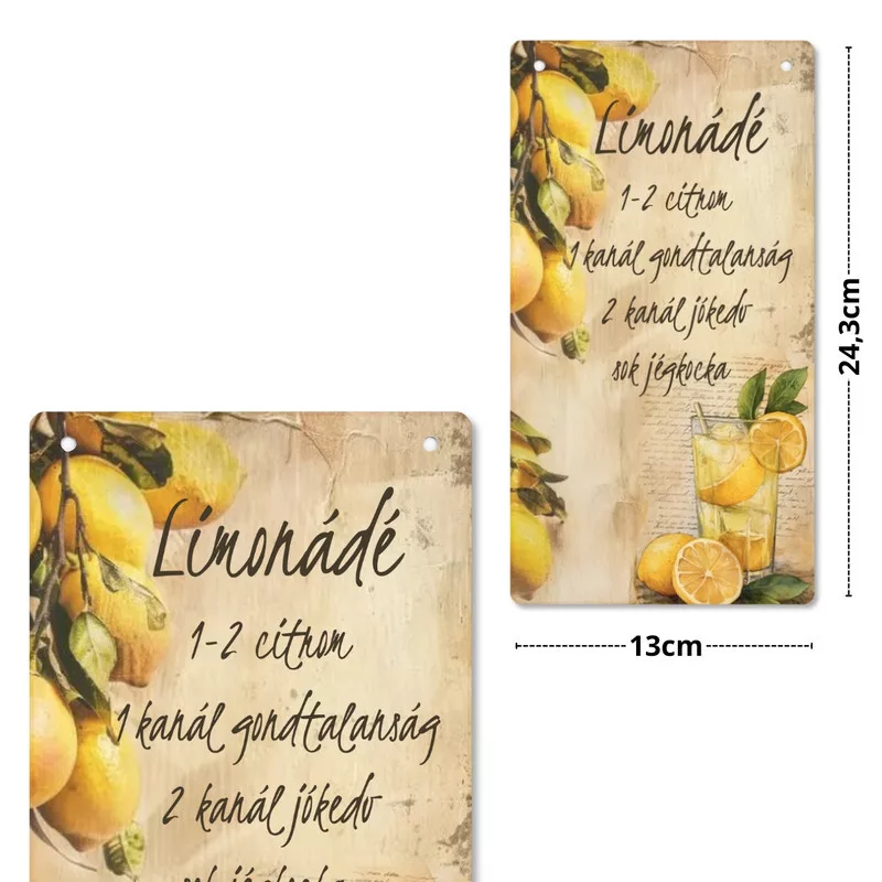 Nyomtatott fa tábla - Citromos akasztós tábla 13x24,3cm