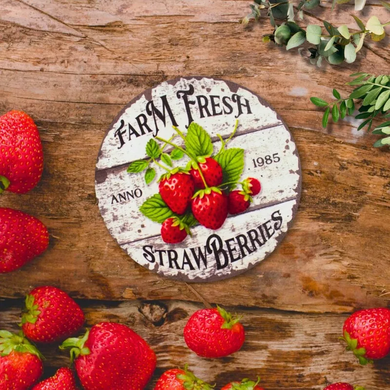 Nyomtatott fa tábla - Eper farm koszorú közép 11,8cm