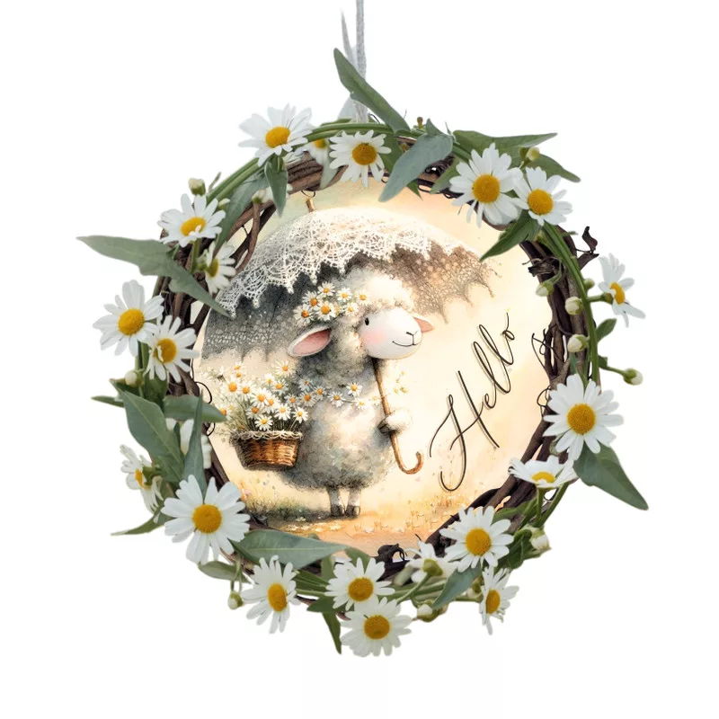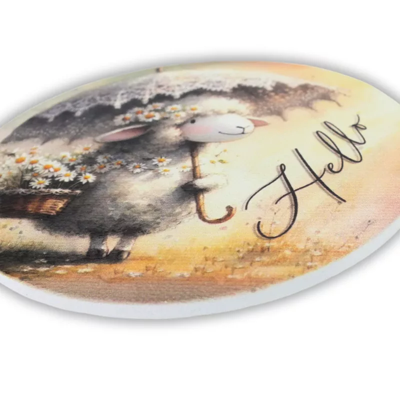 Ez a nyomtatott fa tábla 11,8 cm-es méretben tökéletes koszorúk közepére. Kiváló választás tavaszi és húsvéti dekorációkhoz, ajtódíszekhez és kreatív összeállításokhoz. Finom részletei és kedves motívuma vidám, ünnepi hangulatot kölcsönöz a dekorációnak.