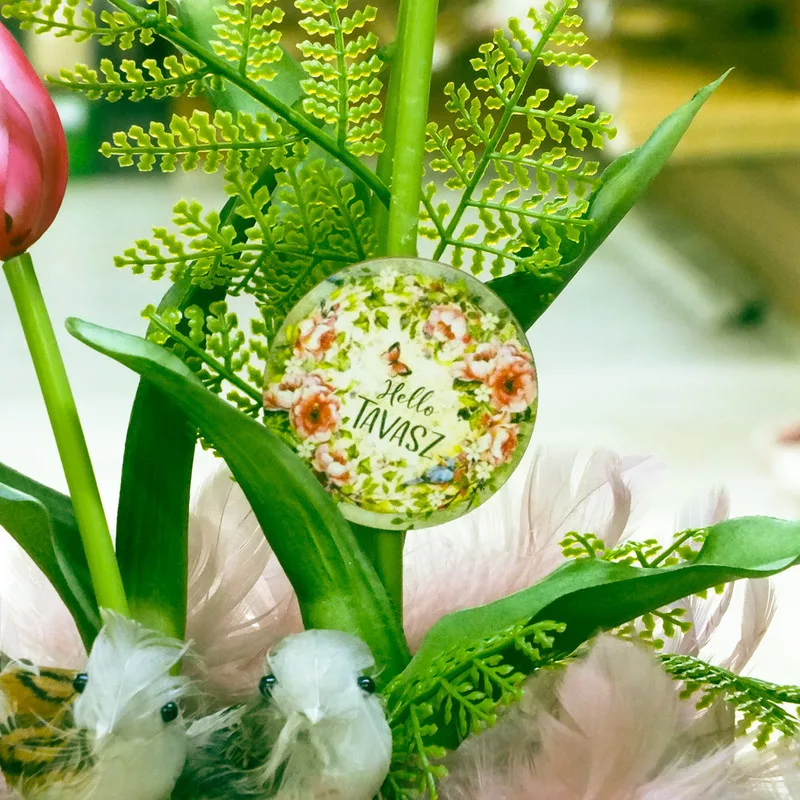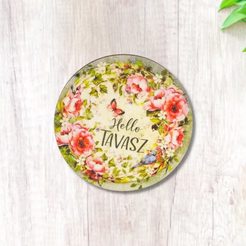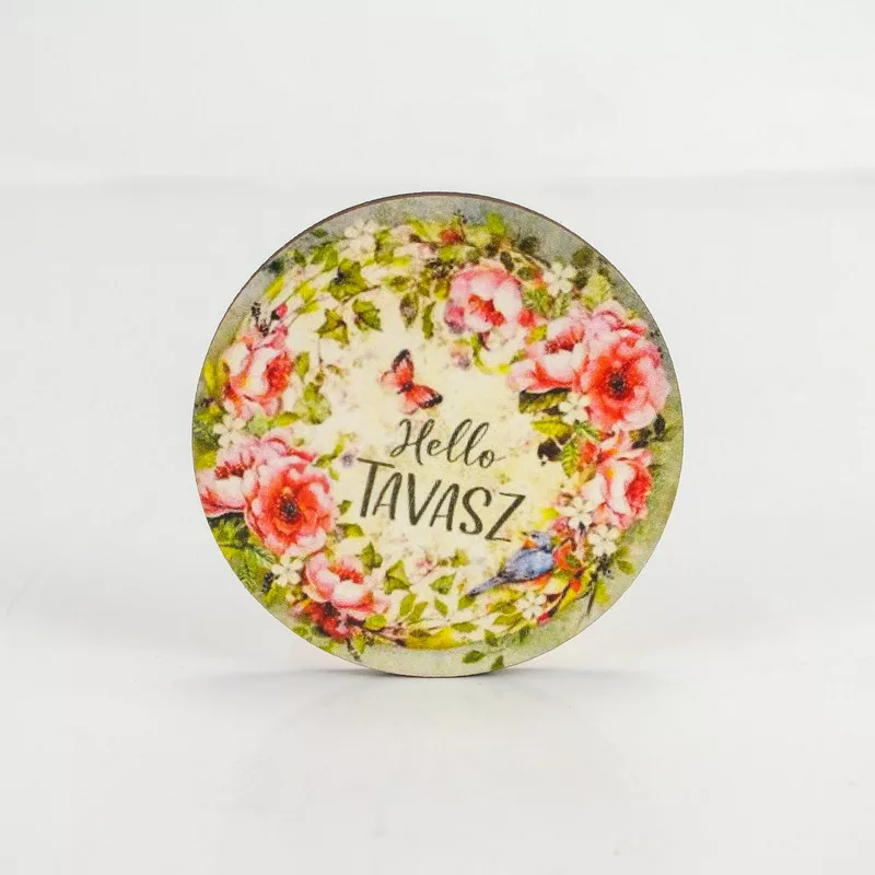 Nyomtatott fa tábla - Hello tavasz - lepkés, kör 1db