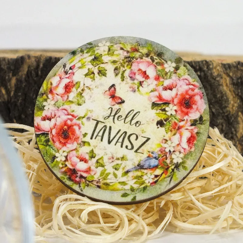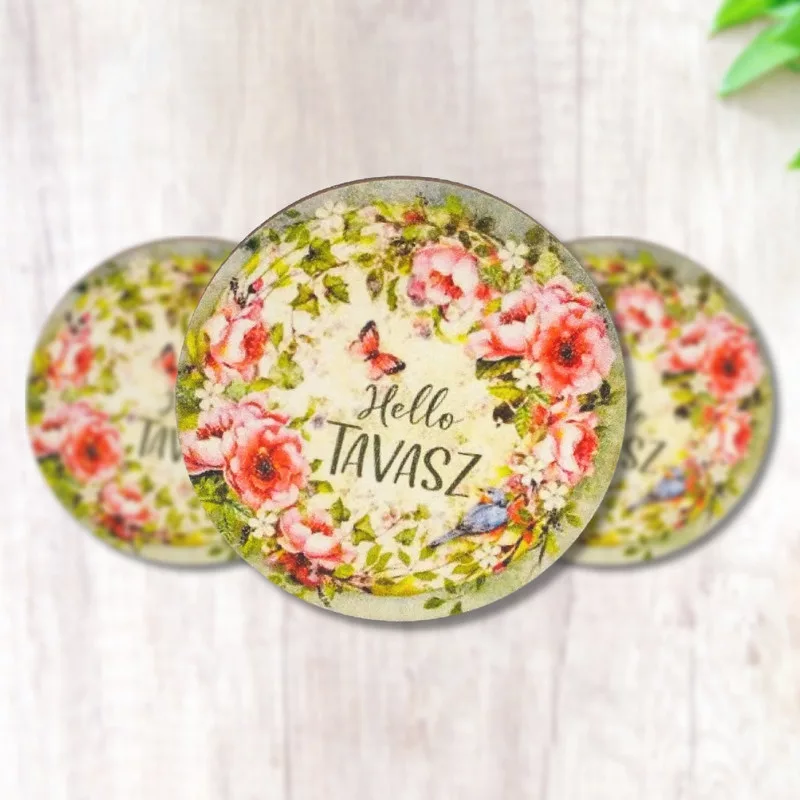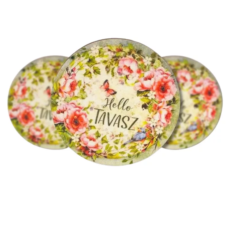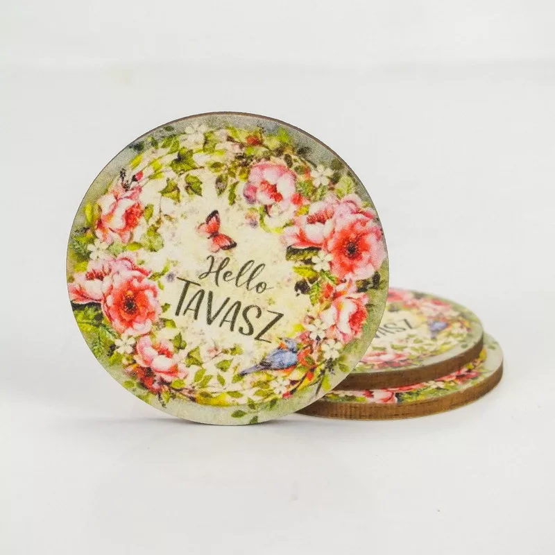 Nyomtatott fa tábla - Hello tavasz - lepkés, kör 3db/cs