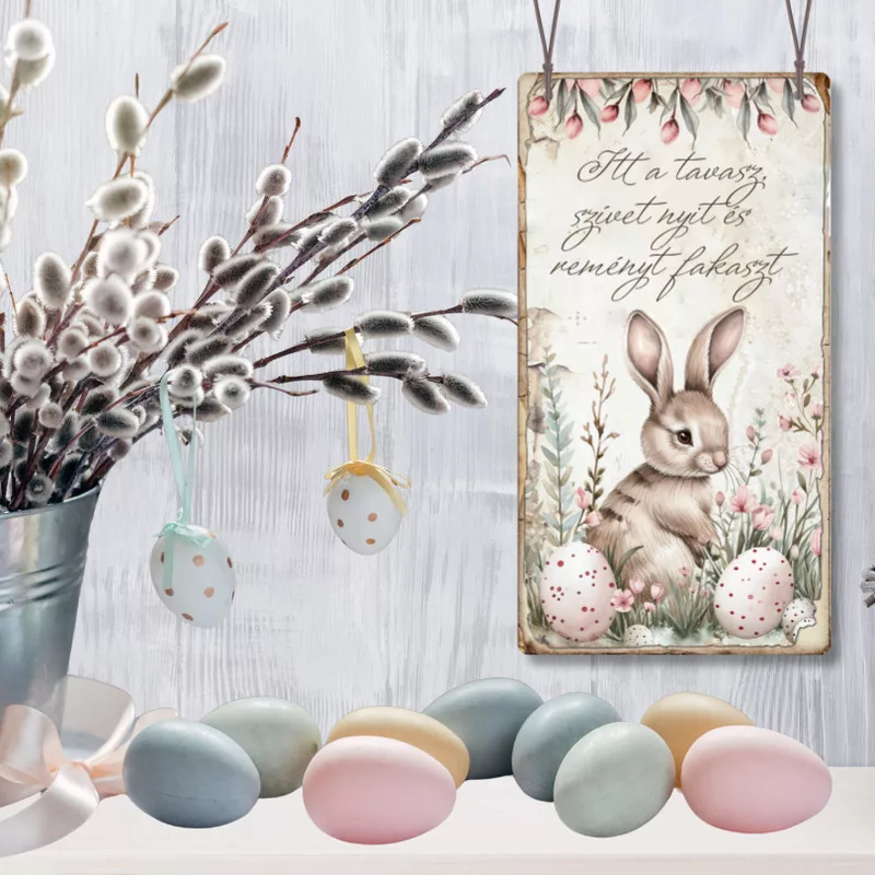 Nyomtatott fa tábla - Húsvéti RSZ téma 13x24,3cm