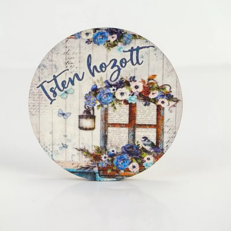 Nyomtatott fa tábla - Isten Hozott - kék, kör 1db