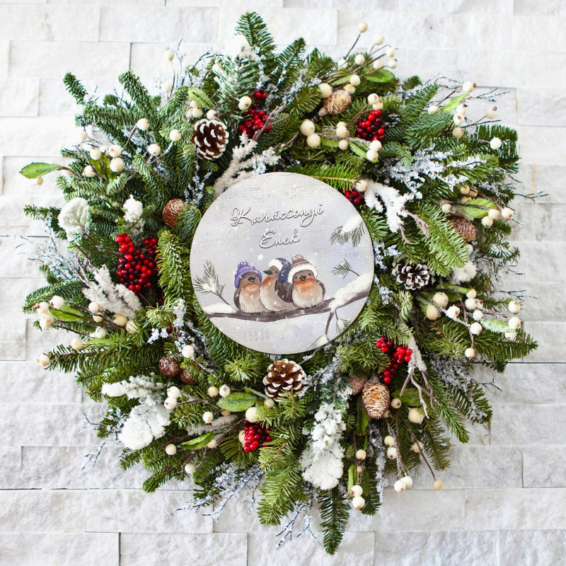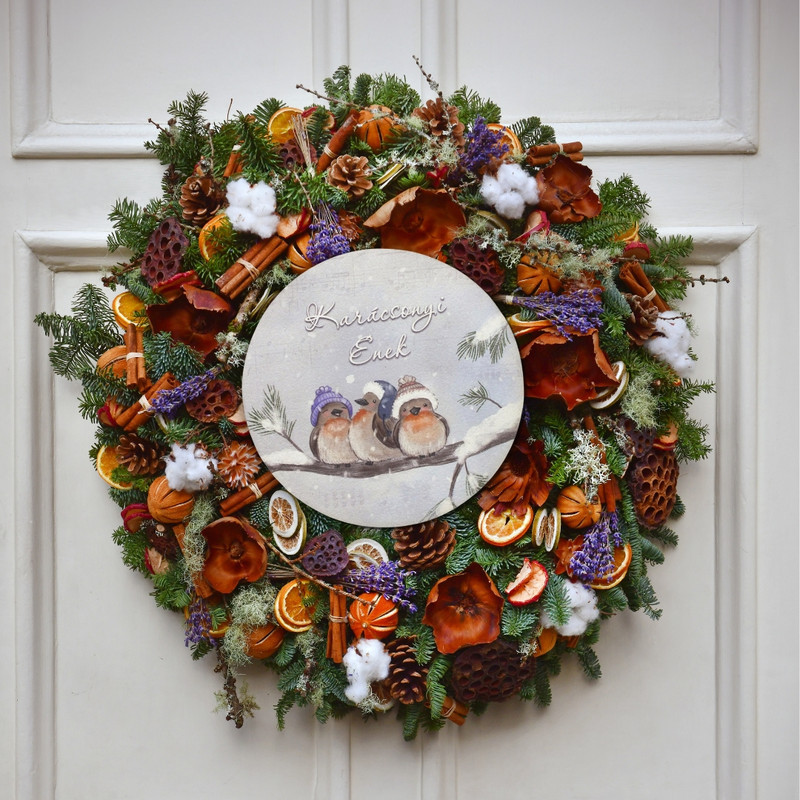 Nyomtatott fa tábla - Karácsonyi koszorú közép 11,8cm