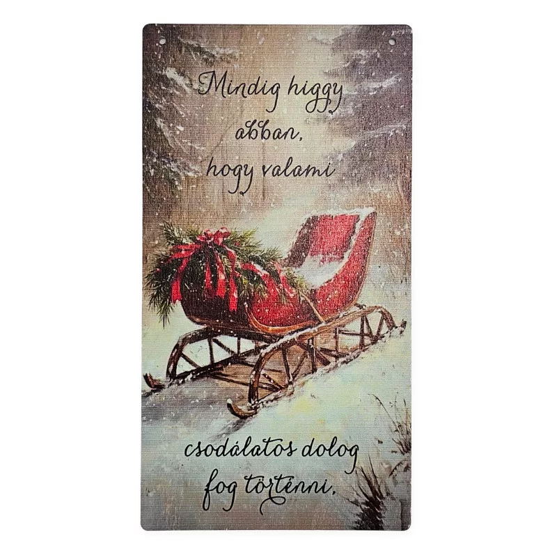 Függőleges karácsonyi tábla, akasztó lyukkal ellátva.