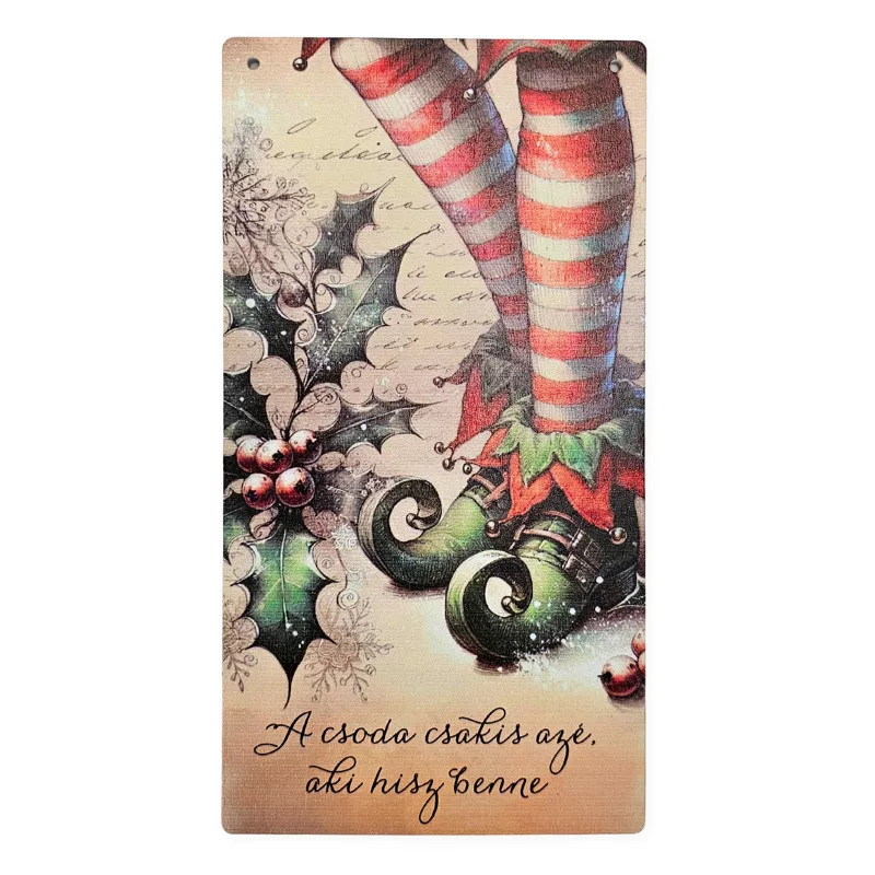 Függőleges karácsonyi tábla, akasztó lyukkal ellátva.