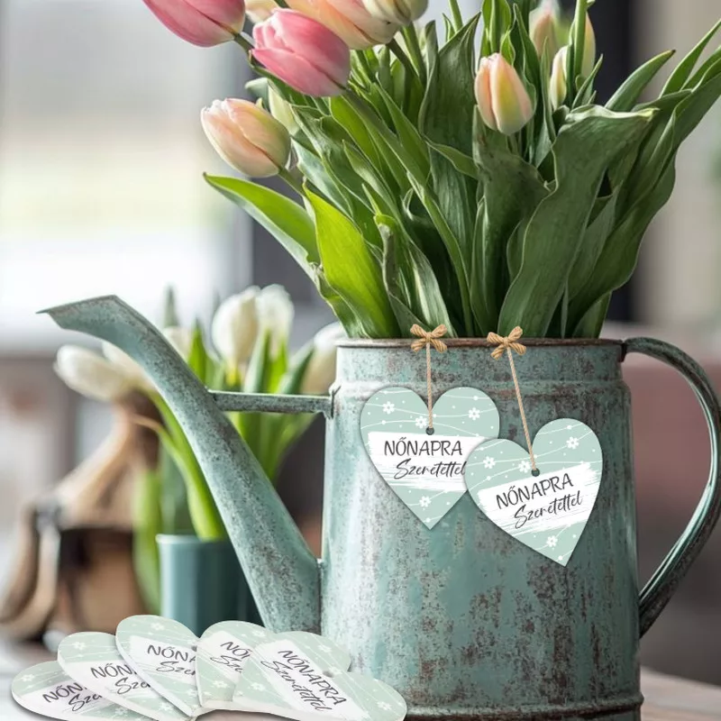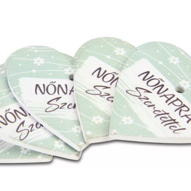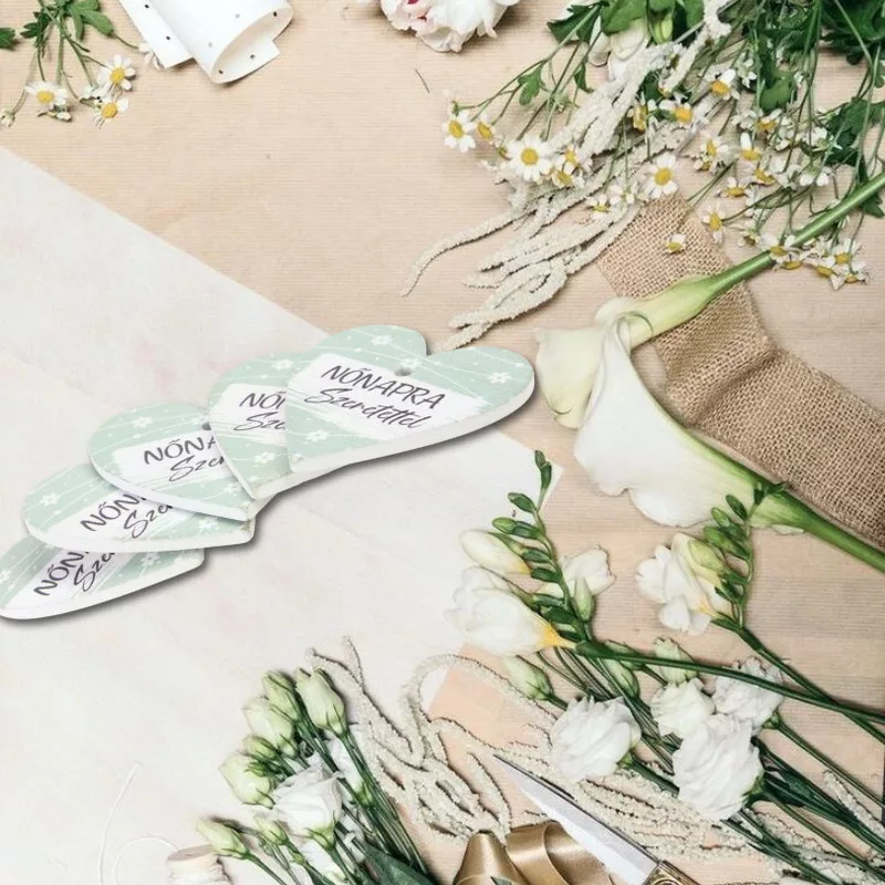Ez a nyomtatott fa tábla nőnapra készült, friss menta színvilágával üde és letisztult megjelenést biztosít. A 4 cm-es méret diszkrét kiegészítővé teszi, amely jól illeszkedik ajándékcsomagokhoz, virágok mellé vagy kisebb dekorációs összeállításokhoz. Az 5 darabos kiszerelés praktikus választás, ha több ajándékot szeretnél egységes stílusban kiegészíteni. A fa alap természetes hatást ad a terméknek, miközben a menta árnyalat könnyedén emeli ki a nőnap alkalmi jellegét.