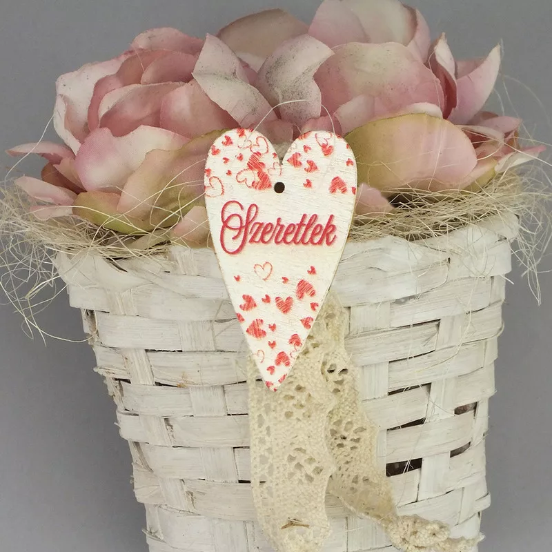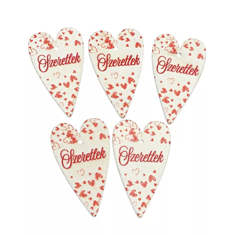 Nyomtatott fa tábla - Szeretlek szív 6cm fehér 5db
