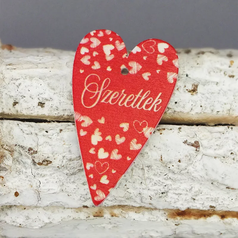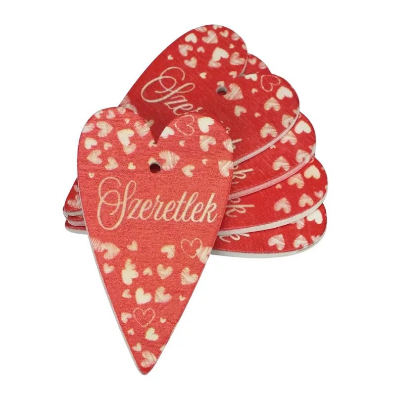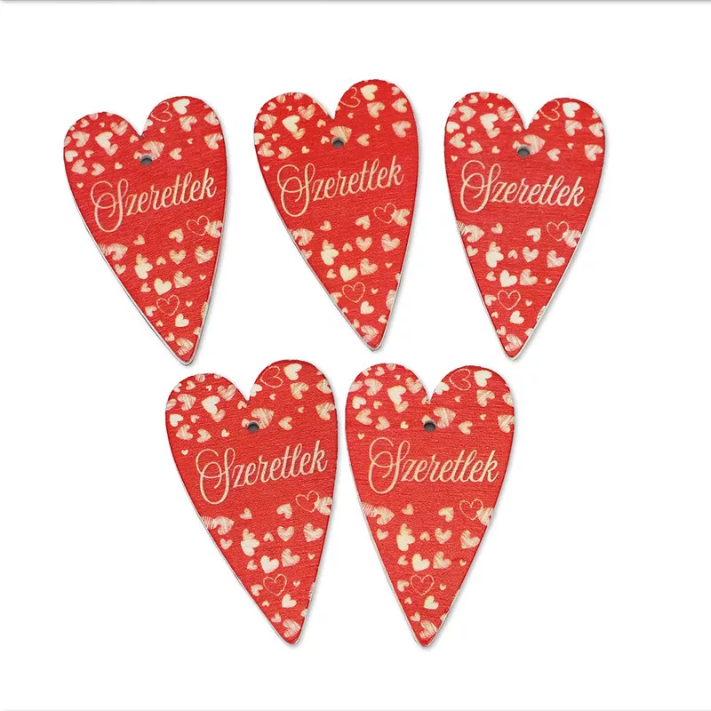 Nyomtatott fa tábla -Szeretlek szív 6cm piros 5db