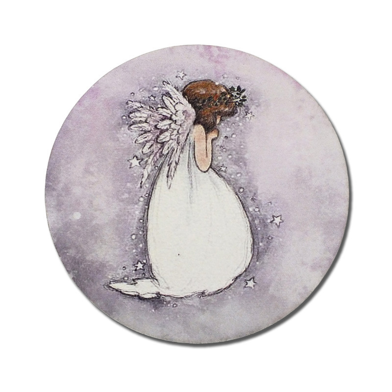 Nyomtatott fa tábla koszorú közép - Angyalkás csillagos 11,8cm