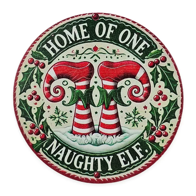 Nyomtatott fa tábla koszorú közép - Elf lábak 11,8cm
