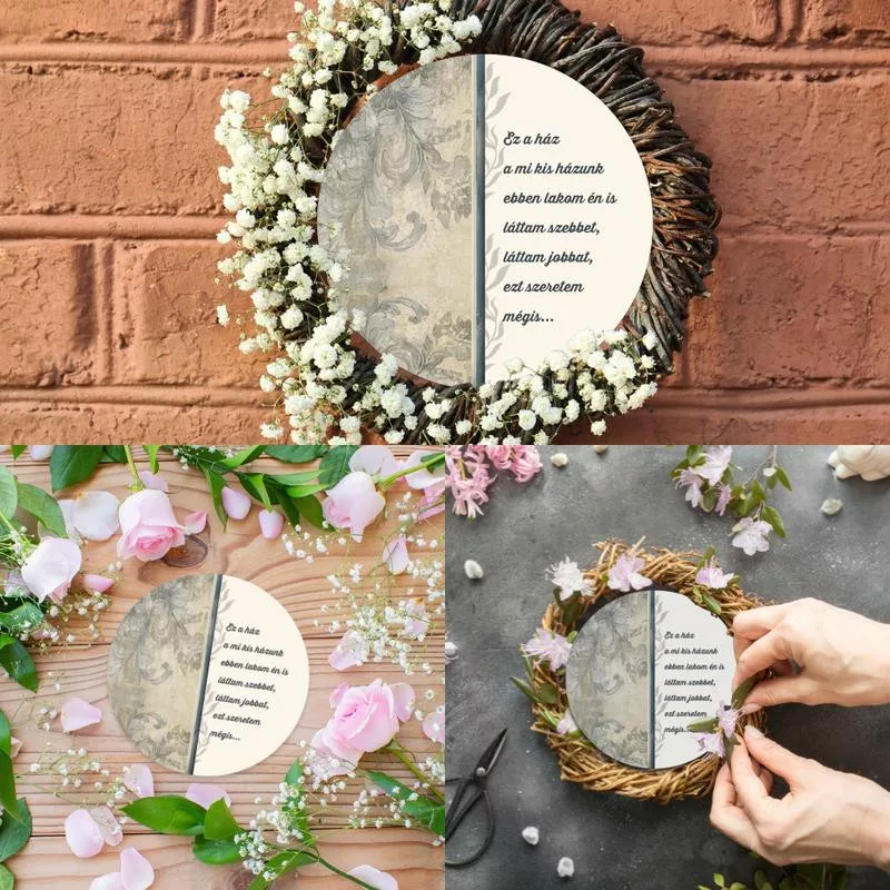 Nyomtatott fa tábla koszorú közép - Ez a ház 11,8cm