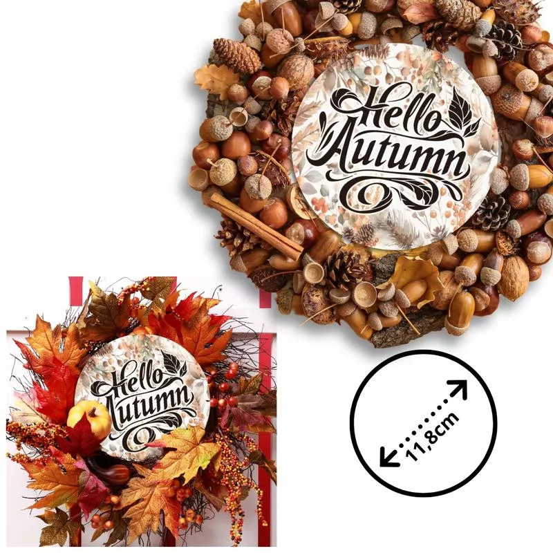 Nyomtatott fa tábla koszorú közép - Hello Autumn 11,8cm