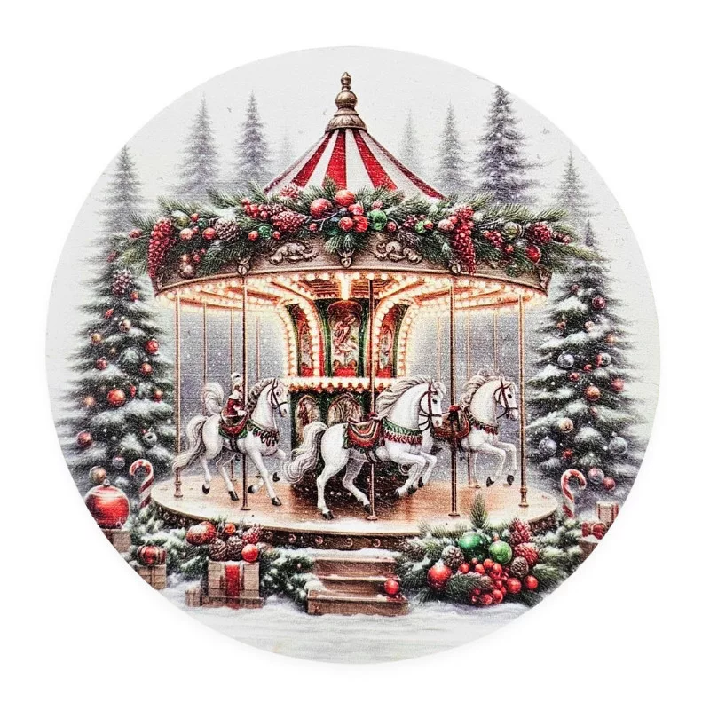Nyomtatott fa tábla koszorú közép - Körhintás 11,8cm