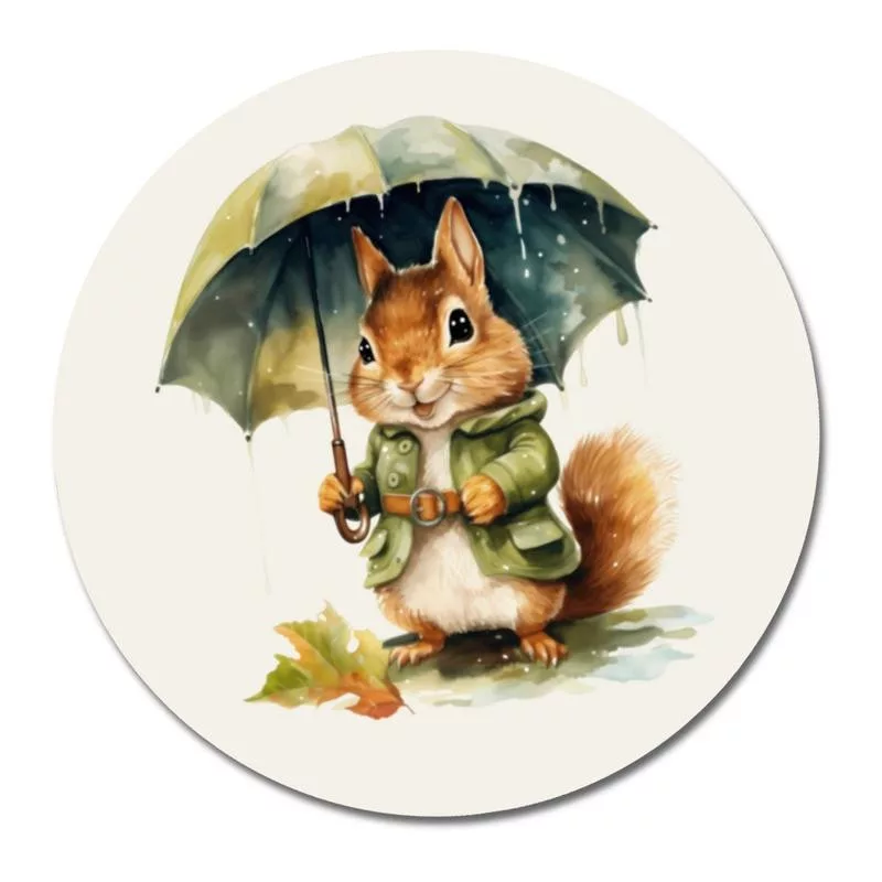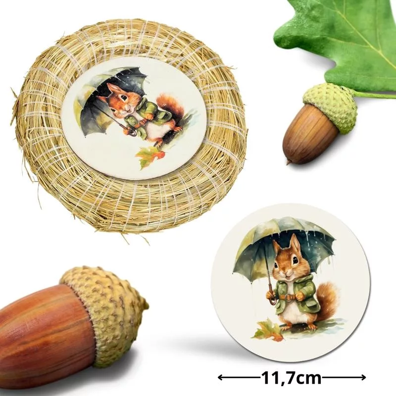Nyomtatott fa tábla koszorú közép - Mókuska esernyővel 11,8