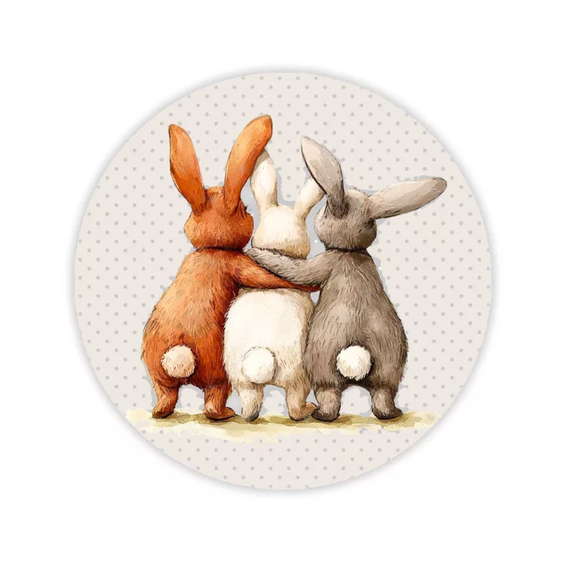 A Nyuszi barátok mintával készült nyomtatott fa tábla koszorú közép 11,8 cm-es méretben kedves és barátságos hangulatot ad a dekorációknak. Saját gyártású termék, amely különleges eljárással, precíz lézervágással és nyomtatott felülettel készül. Ideális választás koszorúk középrészének, ajtódíszekhez vagy egyedi dekorációs kompozíciók hangsúlyos elemeként. A nyuszi motívum szerethető megjelenése jól illeszkedik tavaszi és húsvéti dekorációkhoz. Ajánlott mindazok számára, akik a kézzel alkotott díszítéseiket egy igényesen kidolgozott, egyedi megjelenésű fa táblával szeretnék hangsúlyossá tenni, és eltérni a hétköznapi megoldásoktól.