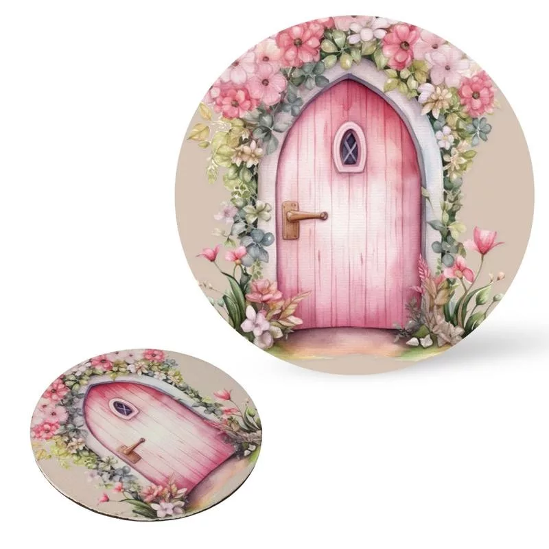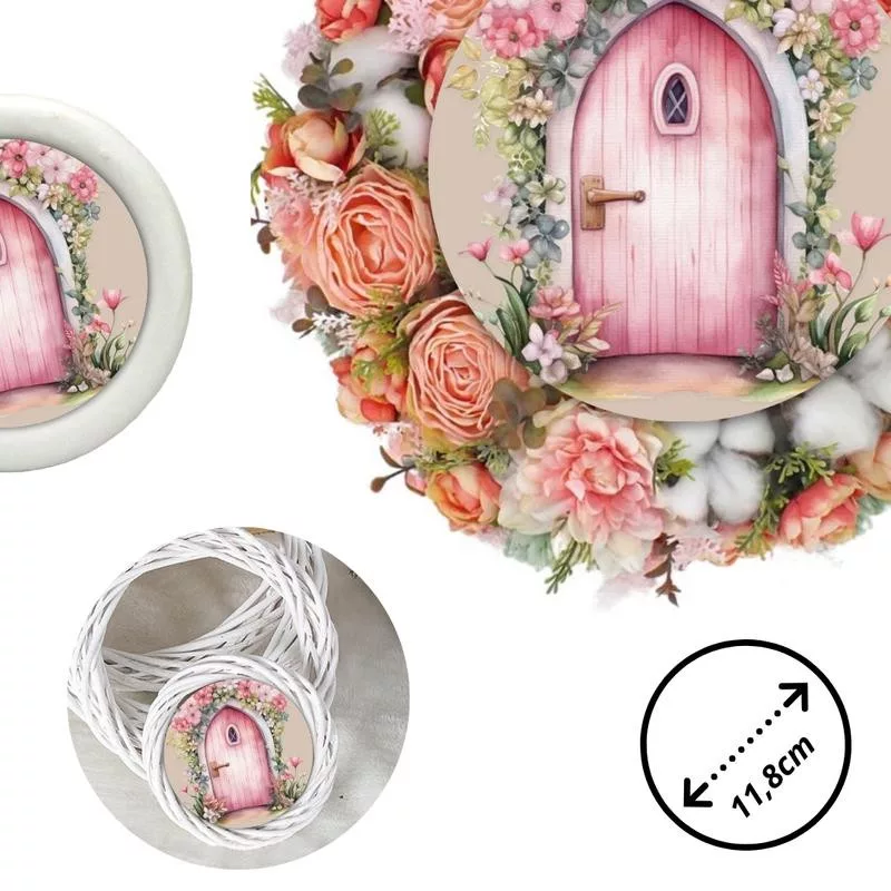 Nyomtatott fa tábla koszorú közép - Tündérajtó rózsaszín 11,8